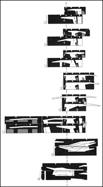 Tavares Pereira (An)notations 1. Serene The site plan1, of impeccable elegance, depicts - or presents - a considerably sloped plot crossed by a diagonal trail. From the complexity and richness of reality, a decision was taken to represent pathways, contour curves and property lines. Three elements define the context where the project is set. Standing out. Those elements2 are evenly represented, with the exact same criteria. A delicate and regular etching over which the project appears at the center of the image. Clear-cut. This identification process can only happen if the observer is familiar with the representational system and its subtleties. If the observer doesn´t recognize the tracing as a contour level, as a road, as with what is supposed to represent, the drawing loses its implicit architectural meaning. Another site plan, another project3, two lines only support the relationship between object and context. They´re even simpler, more austere and enigmatic. Nevertheless they accurately accomplish the task of providing significance to the project - establishing it in a planimetrical framework - and to the drawing - balancing and composing it, grouping distinct elements so they appear as a whole. Getting back to the original drawing the perfect equilibrium of the composition should be stressed: the project and weightier elements at the center, the homogeneous tracing spread all over the sheet with evenly distributed irregularities, sketching balanced axis of organization. The volumetric composition of the house4 is given through the three-dimensional illusion created by the projection of the volumes shadows, stark black, on the horizontal planes. Following conventions, if the drawing is oriented North, the sunlight incidence angle locates its position on a late Summer afternoon. Being so low, the shadow should extend far beyond what is represented. The shadow depiction does not translate its own reality. It is a symbol, adjusted to its communication necessities. A narrative device used to reveal the house massing. We can imagine, at the moment of representation, how it became evident the need to overcome reality, since the southward sunlight incidence would not produce shadows on the roof, thus diminishing the visual impact and perception of the volumetric variations. The expressive coherence converges to communicate an emphatically volumetric architecture with unmistakable predominance of edges and plans. Volumes clearly mark the limits between interior and exterior. Their wise and harmonious interplay is animated by the contrast of light and shadow, the essence of architecture as Le Corbusier put it. How can we explain then, why the extended canopy over the room windows - a protector against harsh sunrays - is not set free of that surface and, instead, prolongs the lateral and roofing plans thus subverting the clear interior/exterior distinction? That element, hinting at an autonomy not given to it, fractures the perception of the project as volume its representation foretold. In the Alenquer project, the house is presented under two distinct conditions: related to the context and, afterwards only5, as an autonomous object. As an object the house is built by the elaborate definition and compliance of rules - self-justified by clarity, but arbitrary in origin6 - ordering the formal definition of volumes and their associative logic in a generative process apparently autonomous of the context. A set of simple, rectangular, container-like volumes of constant section is disposed in orthogonal manner; they juxtapose and balance themselves as if they were independent masses7. The section of the volumes is constant; the length varies. The expressiveness sections acquire in representation is also constant: walls, roof and floors are equivalent. The same stroke, the same continuous line. We can rotate or invert the drawing; it still makes sense. The openings on the containers do not work as windows but as plans, facets defined by the volumes edges. Openings are absences of a facet, always on its shorter side. Other rules forbid contiguous openings, either vertically or horizontally, and each container must point to opposite directions. But the penetration of volumes housing the program takes on an associative logic not unlike the intertwining of DNA molecules8. The house as genetic structure. The concern put into the representation of the project, its specific context, indicates on the other hand a merging of object autonomy and contextual relationships in the project. The building is represented in its relation with urban morphology and topography. Liberated, because of its distinct expression in section, the existing represented in gray, the project in black. The study in plan and section of the surroundings and ruins is crucial to its placement9. In plan it barely fits, tangent, providing additional tension. The longitudinal axis is aligned parallel to the lengthiest wall, distant enough to benefit from the light entrance, to breathe. While on the opposite side; a tangent volume to the wall purposely "scratches" the strategy. A dialogue between all the facets arises, constantly testing the limits of the site. A strained equilibrium is set by proximity and contending volumetric interplay. Tension is then the strategy to occupy a compact site with an objectual architecture. In profile, the tracing indicating the sloped street projection underlines the stable condition of the terrain where the house lands. The sensitive response of liquid bodies to the horizontal condition supplies an explicit sense of tranquility to all liquid surfaces resting. The presence of water inside the enclosed site10 is connected to this strategy. The tranquility welcoming the new object comes from the horizontal condition of the site, in opposition to the dynamic slope of the surroundings. Architecture is either contextual or it isn´t. Permeable11, opens itself to the alert or curious passer-by. Impossibly sla