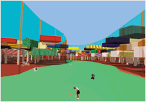 Leeser "Architectures of Banality:" Quaint &Queasy www.leeser.com BUSINESS The economic as well as literal foundation for this "suburb" is the mall, as is the case in most suburbs. The basic layout is as generic a mall plan as possible, two anchors and a connection between them containing smaller shops. The two mall levels are lined on two sides with four parking levels, whose outer edges are flanked by a row of office space, one on each side. The only distraction is a split right down the center of the mall, filled by a road unconnected to the parking levels, winding up to the roof of the mall. This road becomes the key for conceptually and literally accessing or reading the project. TRANSPORTATION The golf course, placed on top of the mall, can be seen as the most important model for the development of american suburbanization. The seamless montaging of artificiality and nature, the blending of simulated landscape with symbolisms of prosperity, signal cultural achievement and social status. It is therefore no surprise that a golf course is standard installation in most suburban communities. Parallels can be drawn between the strategies of movement/progress within the game of golf and the strategies of cultural (upward?) mobility - exemplified within the rural and suburban. The golf course becomes a navigational structure, spatially organizing relationships within the new hybrid community. The winding road emerging out of the canyon between the two halves of the mall signifies the suburban/rural while reminiscent of a swiss alpine road and becomes the symbolic center - if there is any - and the spectacle of the mall visitor. One is reminded of suburbia, the idea of the picturesque landscape is condensed into this one image. Once on top, the meandering road continues elevated above the upper mall level, now lined with two-car-garage after two-car-garage. HOUSING The garages have pitched roofs, and so do the houses, which are suspended above or below the garages. Each house includes a "front lawn" and a "back yard", small strips of turf to be mowed, to contain a tree and a bush. The stacking of the individual houses allows for a high density, while maintaining the iconography of the suburban free-standing house. The houses themselves are made up of three or five identically sized rooms, whose only difference is created through its furniture. Program is radically interchangeable, no hierarchy is given to any one part. The generic nature of the suburban house plan is brought to its extreme resolution. The walls, which are transparent low level liquid crystal surfaces, are capable of displaying computer generated images, such as peoples "home pages" usually residing within the internet. Thus the representation of "home" becomes synonym with the most individual and personal expression of the inhabitant. The banal becomes the thematic force of the most intimate and personal space, in virtual and physical, in conceptual and literal terms. COMMUNITY If inventions like the automobile and in particular television have fundamentally altered our experience of community, it is possible these same technologies can be employed to create a new kind of communal awareness. Video cameras are placed at points of particular social interaction within the houses, displaying images in real time onto the facades of the houses and garage doors, areas where visibility is enforced. The "backyard" areas created by the houses encircling the golf greens become private community areas of their own, introducing a sense of intimacy with one´s neighbors. Along the same lines, these images are omnipresent when driving down the road to one´s home, and one is surrounded with images indistinguishable of one´s own. Inhabitants are confronted with the everyday, with the banal as the spectacle of society, displacing the artificiality of dramatized, unrealistic operatics of television. By questioning the sense of what is real, and making real space more intriguing than the virtual, residents could come to feel ties to their neighbors and discover a society unbeknownst to them before, thus creating a new sense of community. On a less intimate scale is the projection of these same images on a massive 200ft. screen wall inside the center of the mall. By putting these many video feeds into one condensed area, a consumer would be overwhelmed with the imagery unfolding before his or her eyes. This confrontation with banal images of the everyday would be shocking; and in this setting, unlike within the housing area, the images become spectacle. The viewer is allowed to acknowledge his or her natural tendency towards voyeurism, and in this admits something about human nature; quite possibly a reconsideration of ideals. It is true that perhaps these images would be frightening; it is true that they could be immensely boring. Either way, they are exposing the question of community in a fashion separate to what has been recently held dear. They threaten the ideals of privacy and of security. EDUCATION What is it to drop your child off for school and then be able to do some quick shopping? The favorite hangout spot for high-school students is the mall, why not put the school in the mall? The high school is located in the second floor of the mall, where mall-goers can go outside into the football field and easily access the top level. It is a site for major community events, and where any interaction between the people above the mall (residents) and the people at the mall (shoppers) occurs. The school resembles the typical suburban house, with vinyl siding and shutters with pitched roofs. The icon of the vinyl siding pitched roof house is what we have come to recognize as "home" in suburbia. PARKS AND RECREATION A park design that offers opportunity without imposing particular views of what and where "play" should occur. This park design is to be called the vernacular. The manipulation of the shape of the surface was the first of two steps